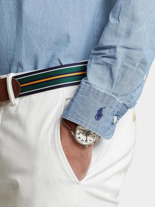 CAMISA CUSTOM FIT COASTAL EN OXFORD BEIGE STRIPED