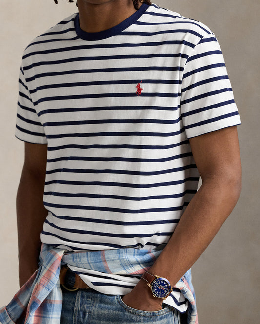 CAMISETA CLASSIC FIT DE ALGODON DE PUNTO A RAYAS NAVY