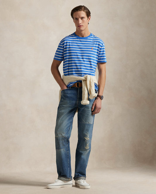 CAMISETA CLASSIC FIT DE ALGODON DE PUNTO A RAYAS EMBAIMENT BLUE