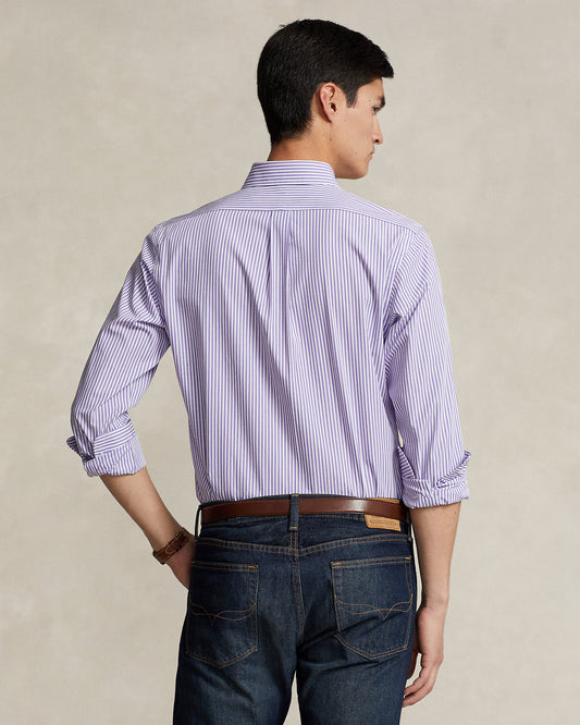 CAMISA CUSTOM FIT DE POPELINA STRETCH LAVANDER WHITE