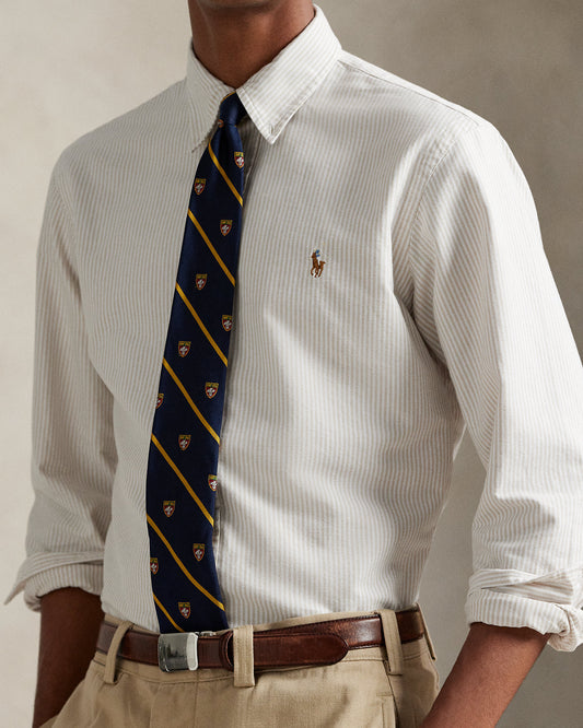 CAMISA CUSTOM FIT COASTAL EN OXFORD BEIGE STRIPED
