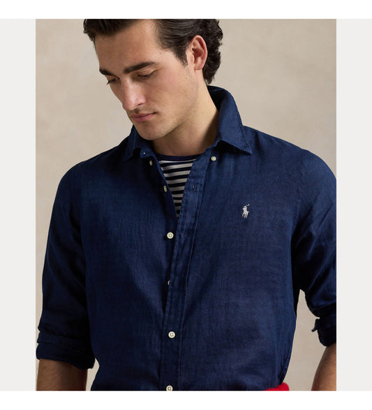 CAMISA CUSTOM FIT DE LINO NEWPORT NAVY
